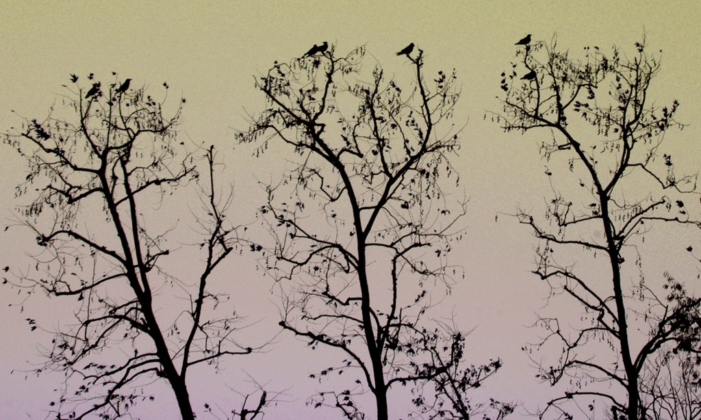 These were taken in 2004 on walks in the neighborhood. I have named them: Sunset Eucs, Morning Stars, and Seven Morning Crows. or Sweet Silhouettes. I just like the background colors and strong graphic imagery of backlighting.