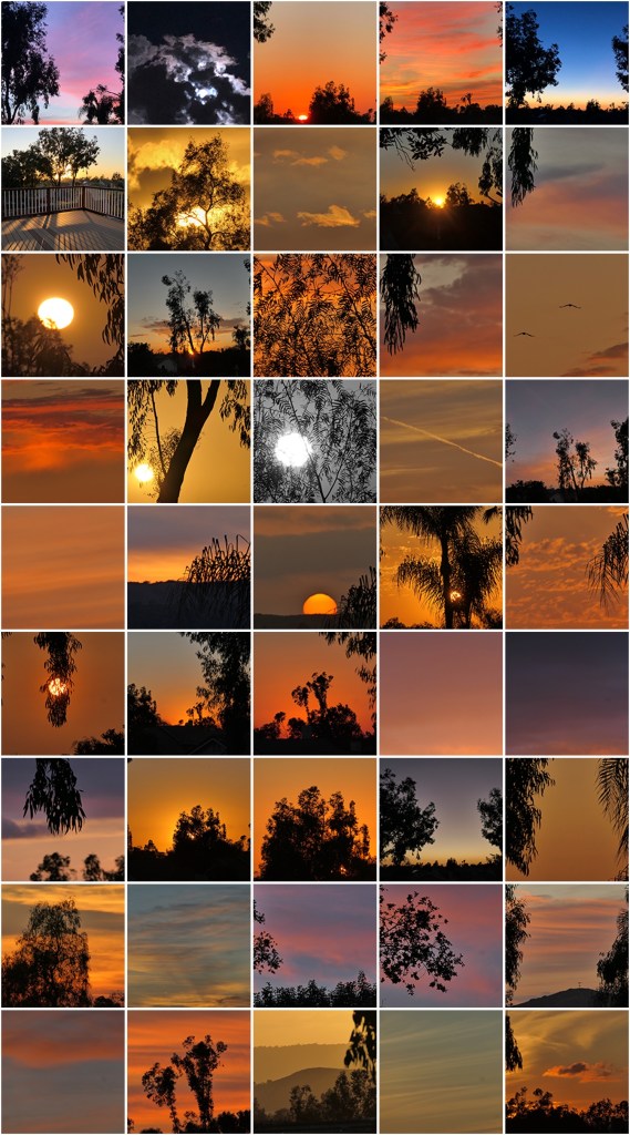 I went to college at SUNY Oswego. It was listed in National Geographic at that time as top sunsets. I lived on campus on the tenth floor dorm for three years overlooking Lake Ontario, looking west. Learned to be a weather watcher too watching snow squalls, and water spouts come on shore. It was extreme conditions, I moved west after graduation after three months of backpacking around Europe. Enough cold rain and snow. But I learned “how to” sunsets. This is a small sampling from the Covid era.